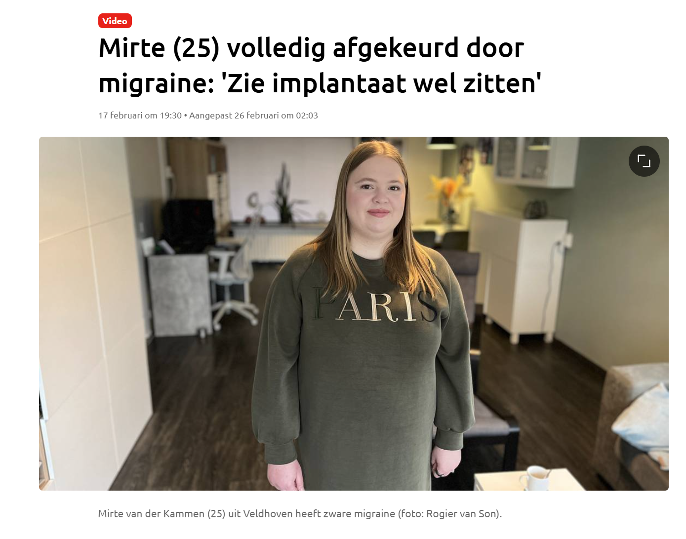 In februari 2025 heb ik ook mee mogen werken aan een artikel en een tv fragment voor Hart van Nederland. Ook hier heb ik mogen delen over mijn leven met migraine, om duidelijk te maken wat de impact van migraine is.